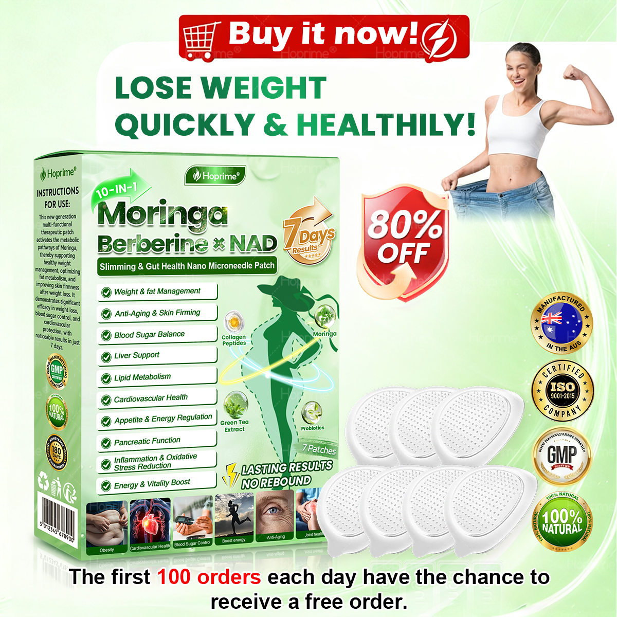 โ ๐ฏ๐ค๐๐ซ๐๐ข๐ยฎ๐ด๐๐๐๐๐๐ฎ ยท ๐๐ฒ๐ฟ๐ฏ๐ฒ๐ฟ๐๐ฃ๐ ร ๐๐ผ๐+ ๐๐-๐ข๐ง-๐ ๐๐ฑ๐๐ฎ๐ป๐ฐ๐๐ ๐๐๐ฃ๐ค ๐๐๐๐ง๐ค๐ฃ๐๐๐๐ฅ๐ ๐๐๐ญ๐๐ breaking away from the burden of traditional injectable or oral weight-loss products, this advanced nano microneedle transdermal delivery system gently and steadily releases active ingredients for up to 8 hours. Core ingredients Moringa and Berberine work synergistically to support appetite management and lipid metabolism, making fat loss feel more natural and effortlessโwithout extreme dieting or physical strain. At the same time, NADโบ supports cellular energy levels and skin firmness, helping maintain a healthy, well-toned appearance during body-weight changes. The overall formula is gentle and stable, offering a more comfortable experience for those seeking an effective, non-irritating, and non-injectable approach to weight management.